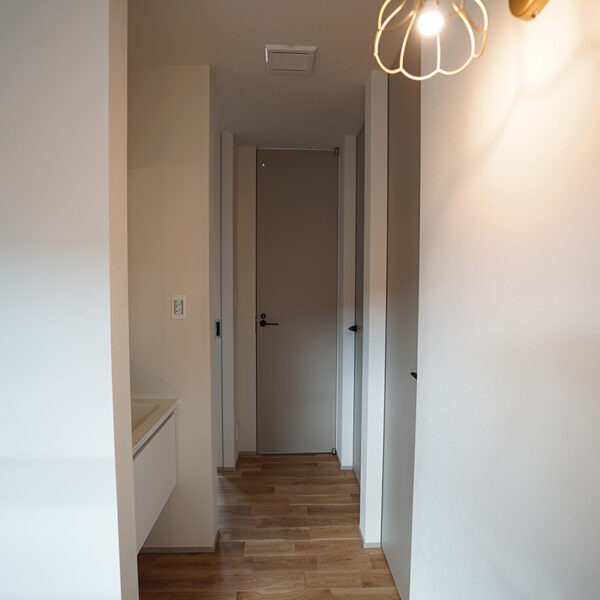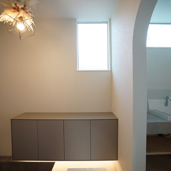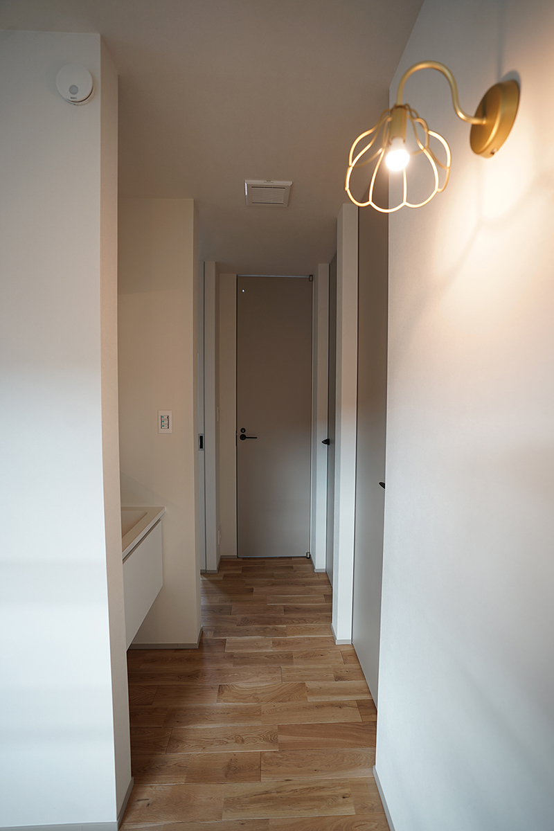 お花の照明器具や框の入った造作家具の扉などで