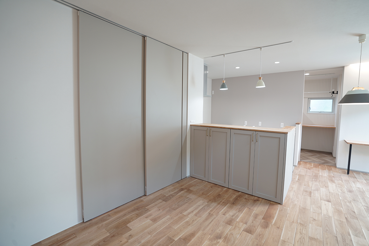 お家のなかに入るとグレイのトーンを引き継ぎながらも