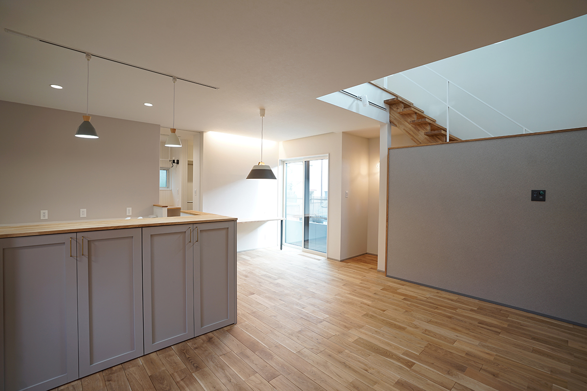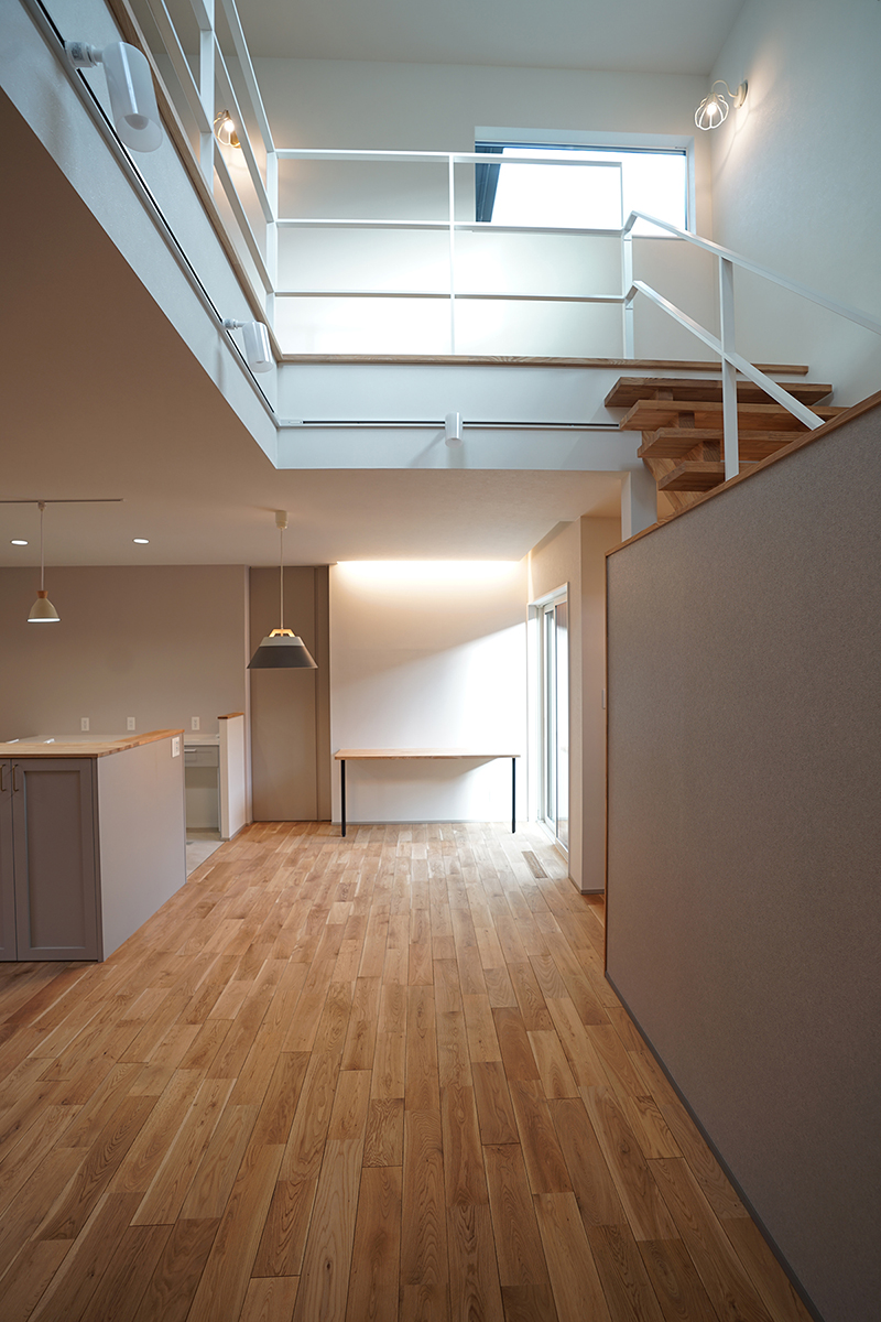 優しく吹き抜けを照らしてくれるお家になりました。