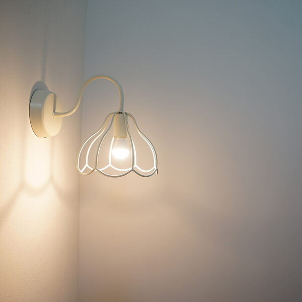 奥様が選ばれたお花の照明器具がぽつぽつと咲いているように